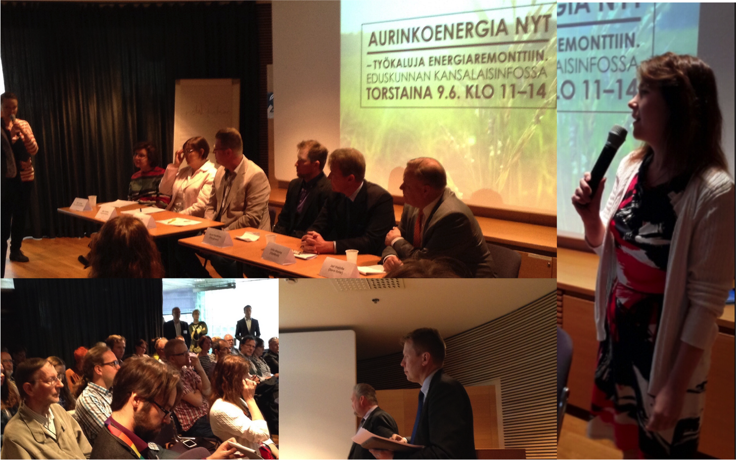 Lähienergialiitto ja kansanedustajat Harri Jaskari, Jari Myllykoski, Johanna Karimäki järjestivät Aurinkoenergia nyt –tapahtuman 9.6.2016 Pikkuparlamentin kansalaisinfossa. Tapahtuma sisälsi paneelikeskustelun, paneeliin osallistuneiden yritysten toiminnan esittelyitä ja tuoreiden aurinkoenergiakirjojen esittelyt.