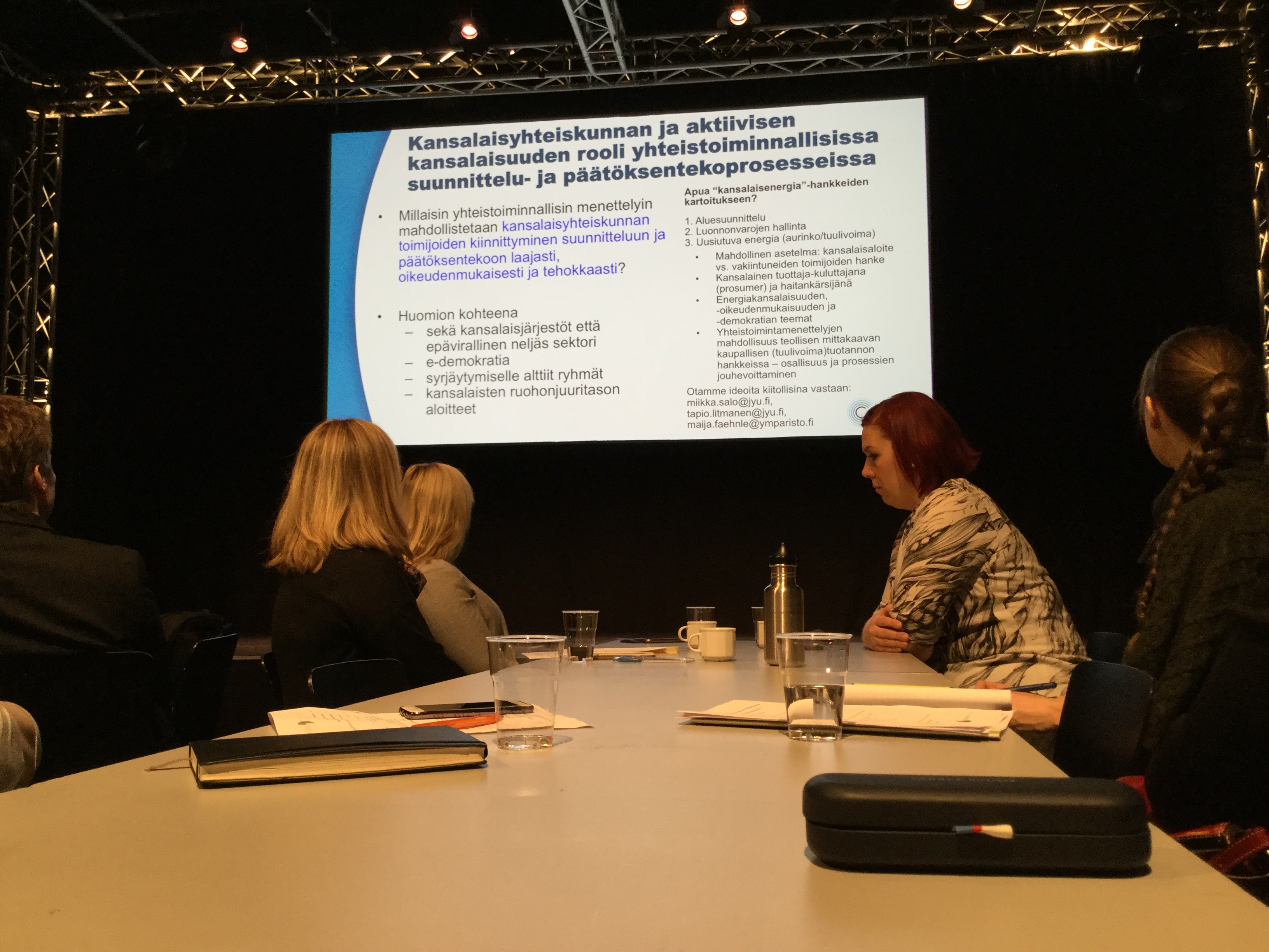 ”Yhteistoiminnallisia ratkaisuja sirpaloituvien yhteiskuntien ongelmiin – käänne yhteishallintaan ympäristöpäätöksenteossa” -tutkimushankkeessa (CORE) tutkitaan ja kehitetään malleja, joilla julkinen valta, kansalaiset, yritykset ja tutkijat pystyvät yhdessä ratkaisemaan mutkikkaita yhteiskunnallisia ongelmia kuten ympäristökysymyksiä. Tutkimuksessa analysoidaan, kokeillaan ja jalostetaan yhteistyöhön perustuvia käytäntöjä kuten kansalaispaneeleja, politiikkadialogiprosesseja, yhteistoiminnallista oppimista ja yhteistä faktojen etsintää.