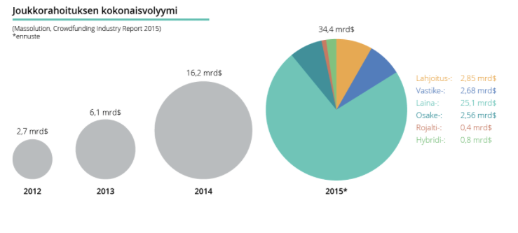 Tilastot osoittavat joukkorahoitusmarkkinoiden käsittämättömän kasvuvauhdin. Joukkorahoituksen kokonaisvolyymi on yli kaksinkertaistunut vuosittain jo pidemmän aikaa. Euroopassa kasvuvauhti on ollut viime vuodet jopa yli 140%. Suurin osa vaihtoehtoisesta rahoituksesta on lainapohjaista joukkorahoitusta, johon Joukon Voiman liiketoiminta nimenomaisesti keskittyy.