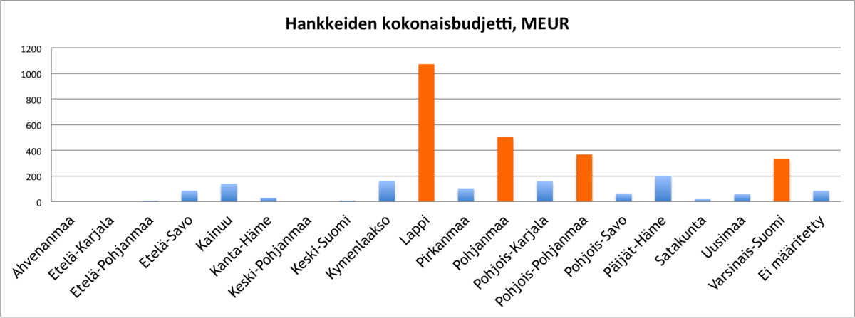 Jaoin hankkeet maakunnittain. Minusta on mielenkiintoista nähdä, missä päin Suomea energiateknologian kärkihankkeita innokkaimmin ajetaan!