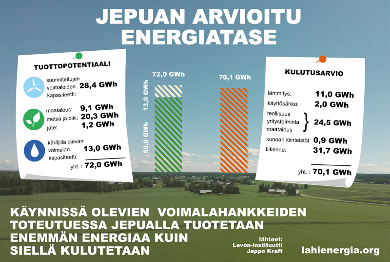 Näin arvioivat Vaasan Yliopiston Ari Haapanen ja Pekka Peura, jotka ovat Levón-instituuttissa yhdessä Yrkeshögskola Novian ja Suomen Metsäkeskuksen kanssa kartoittanut pohjalaisten kylien energiantuotantopotentiaalia. Energiakylä-hankkeeseen valittiin neljätoista kyläaluetta, joiden valmiuksia energiaomavaraisuuteen ryhdyttiin kartoittamaan. Laskelmissa asumisen, teollisuuden ja liikenteen energian yhteenlaskettua kulutusta verrattiin tuotantopotentiaaliin, joka toteutuisi, mikäli energiakylien lähistöltä saatavat uusiutuvat energiavarat hyödynnettäisiin. Tällaisia varoja ovat jäte, tuotantoeläinten lanta ja muut jätökset, hyödyntämättä tai kesannossa oleva pelto, metsä, tuuli ja vesi sekä maa- ja ilmalämpö. Vertailun tuloksena saatiin laskettua kyläkohtainen energiatase.