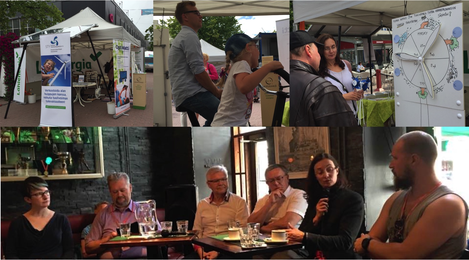 Lähienergialiitto oli mukana SuomiAreenan Kansalaistorilla. Kolmen päivän ajan keskustelimme SuomiAreenan kävijöiden kanssa uusiutuvaan energiaan ja energiatehokkuuteen liittyvistä kysymyksistä. Tämän lisäksi kävijät pääsivät mittelemään voimiaan kahvinkeittimen kanssa, lataamaan akkujaan, testaamaan tietojaan tuulivoimasta ja kokeilemaan onneaan.