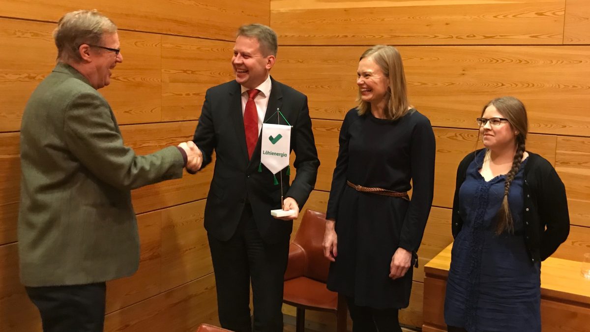Luovutustilaisuudessa kunniapuheenjohtaja Raimo Lovio perusteli valintaa seuraavasti ”Energia- ja ilmastopolitiikka ei ole ollut aina kovin korkealla poliittisella agendalla ja siksi asiasta kiinnostuneet kansanedustajat ovat olleet vähissä.”