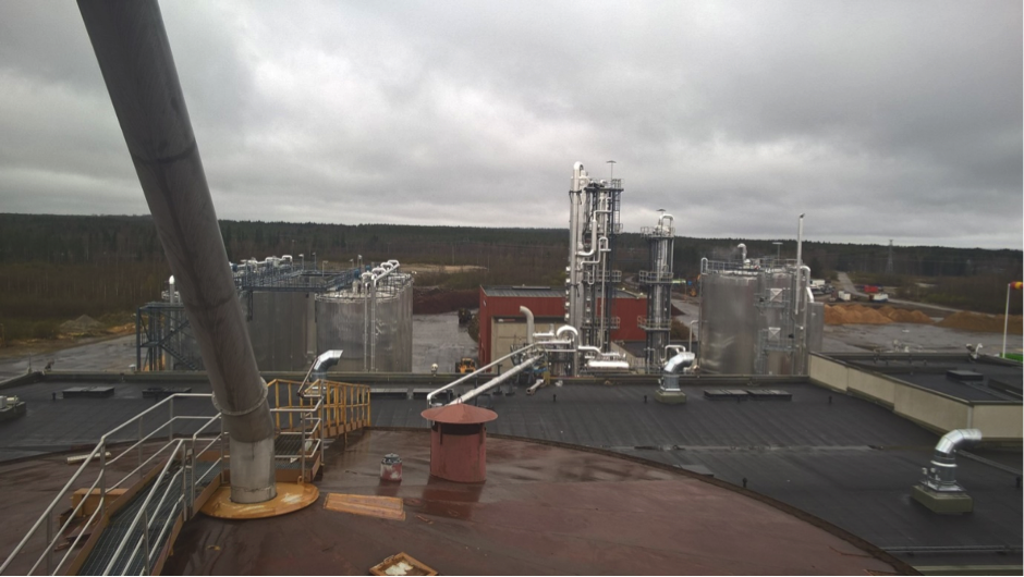St1:n Kajaaniin rakentama biojalostamo on sijoitettu Pölkky Oy:n sahan viereen