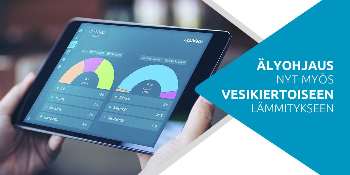 Sähkölämmitystä huonekohtaisesti käyttötarpeen mukaan optimoiva OptiWatti-ohjaus on ollut markkinoilla viiden vuoden ajan. Nyt palvelu laajennetaan kattamaan myös vesikiertoisen lämmityksen kohteet, ensi sijassa julkiset ja yrityskiinteistöt. Älyohjaus soveltuu erinomaisesti myös kiinteistöihin, joissa on hybridilämmitys eli yhdistelmä vesikiertoista lämmitystä ja suoraa sähkölämmitystä esimerkiksi kosteissa tiloissa.