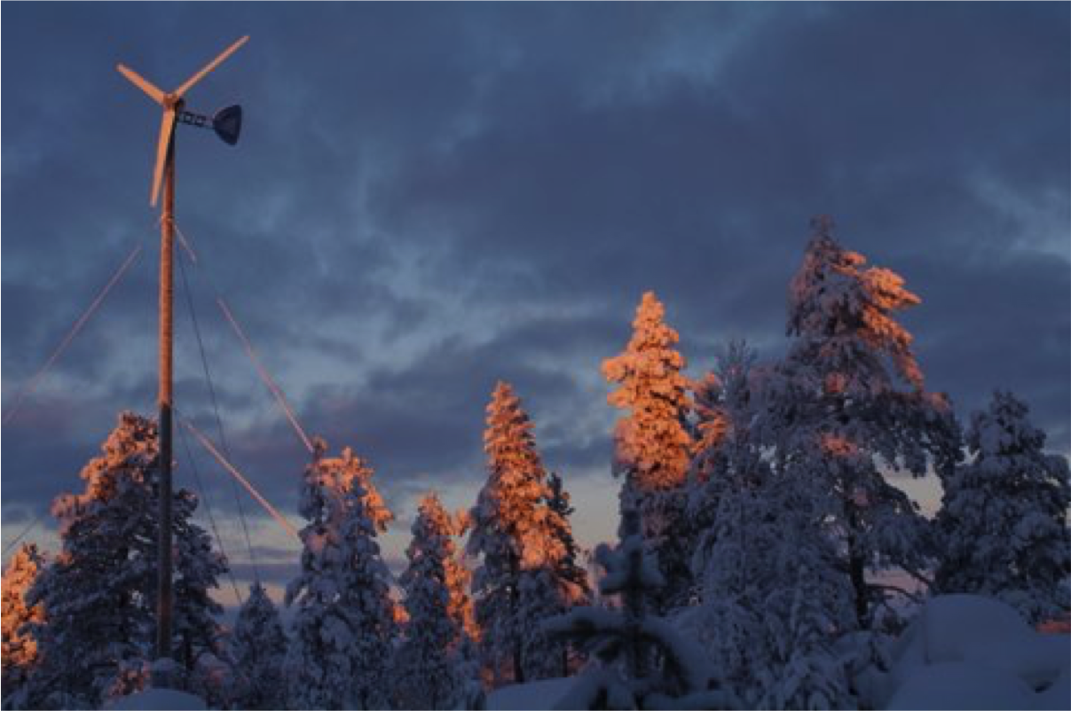 Vaaran laellakin voi asua sähköverkon ulkopuolella mukavasti, kun luottaa sähköntuotannossa tuulivoimaan ja aurinkoenergiaan.