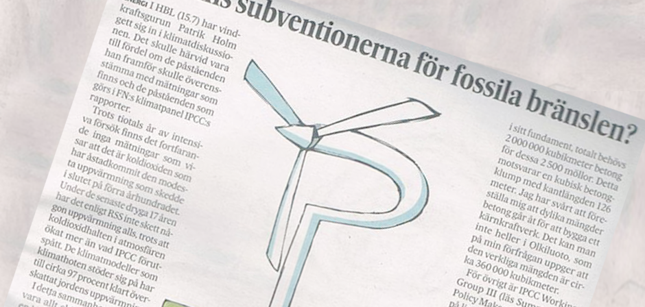 Kuukauden sisällä kaksi isoa lehteä, Hufvudstadsbladet (20.7.) sekä Tekniikka&Talous (numero 24/2014) julkaisivat puolisivuiset, ilmastotieteilijöiden osaamista kritisoivat puheenvuorot Var finns subventionerna för fossila bränslen? sekä Ilmastonmuutos – tiedettä vai uskontoa?. Kirjoittajien vakavilta vaikuttaviin syytöksiin kuului muun muassa se, että näyttö ei riitä hiilidioksidin lämmittävään vaikutukseen, ja että mallinnukset ovat liioitelleet liki sata prosenttia ilmaston lämpenemisestä. Jotta median kanta olisi neutraali, tulisi kummankin lehden nyt julkaista pitkä sarja ilmastotiedettä tukevia artikkeleita, tunnustaahan maailman ilmastotieteilijöistä 97% ilmastonmuutoksen ja ihmisen vaikutuksen siihen (Cook et al. 2013).